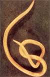 Anyway, this got me thinking about worms. Let's look at the subject of that article, the roundworm. Roundworms in horses, also known as ascarids, are relatively common, and are transmitted by swallowing eggs from contaminated hay or water. The eggs develop into larvae in the stomach of the horse, which then migrate to the liver, heart and lungs. They are then coughed up and swallowed - then develop into egg-laying adults, again in the stomach. This process takes about 3 months. They can cause coughing, pneumonia, liver damage, colic and diarrhoea. A heavy burden can cause intestinal blockage or rupture. Signs of worminess, from any species of parasite, include pot belly, rough coat, slow growth and general unthriftiness (among others).